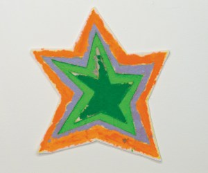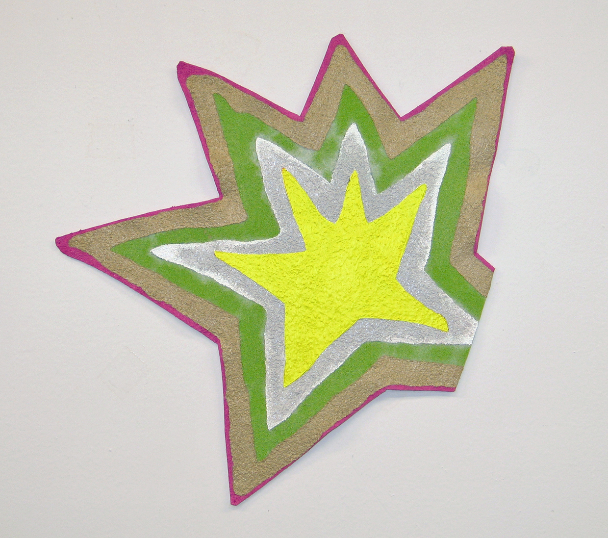 Star 1, acrylic, fluorescent acrylic, metallic acrylic, marker on felt and canvas, 12 x 10.5 inches