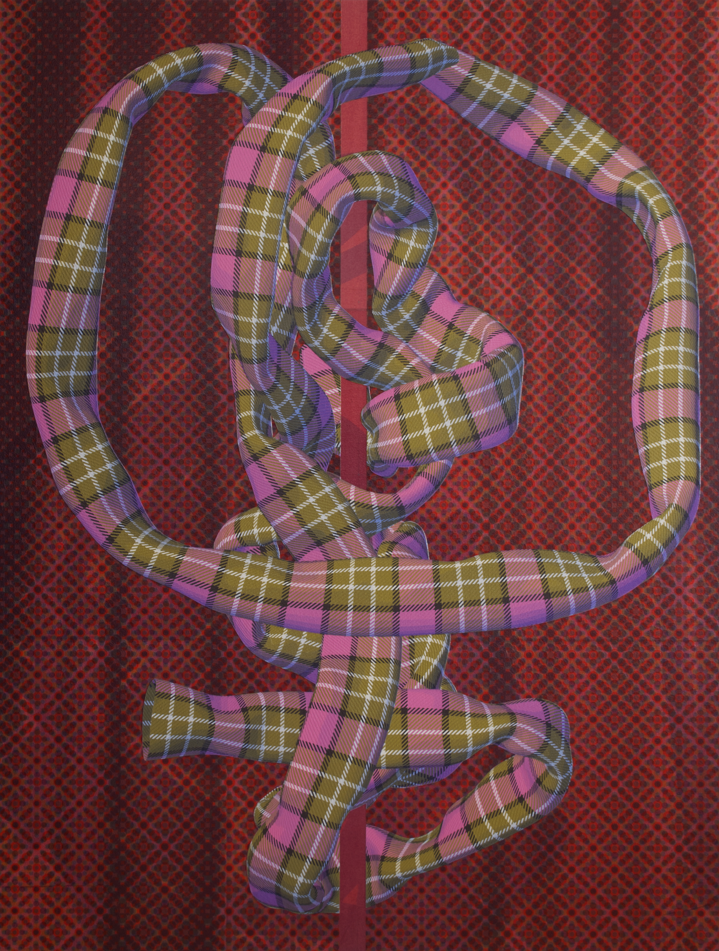 plaid 9 (Red Gordon), acrylic on aluminum, 41.5 x 41.5 inches