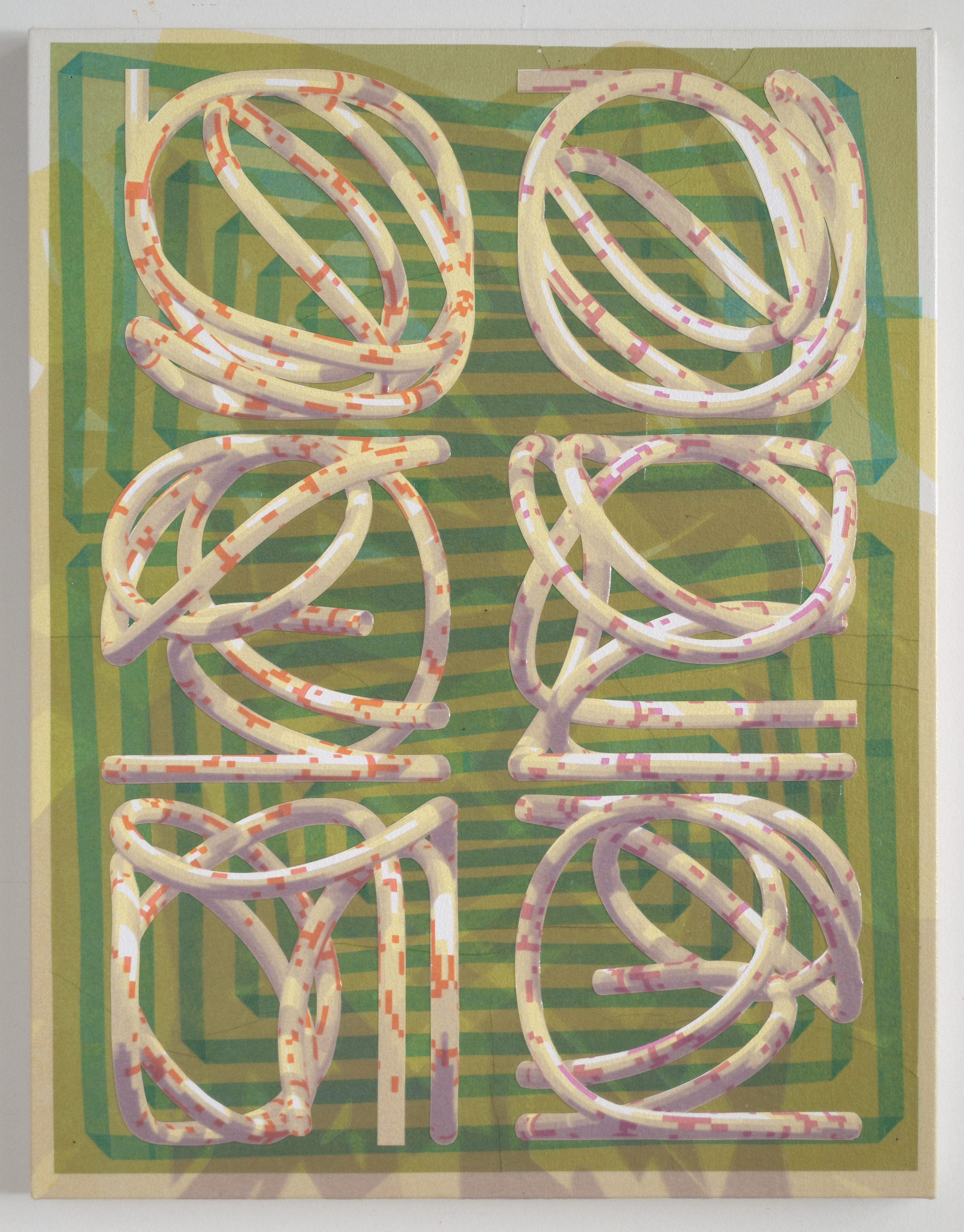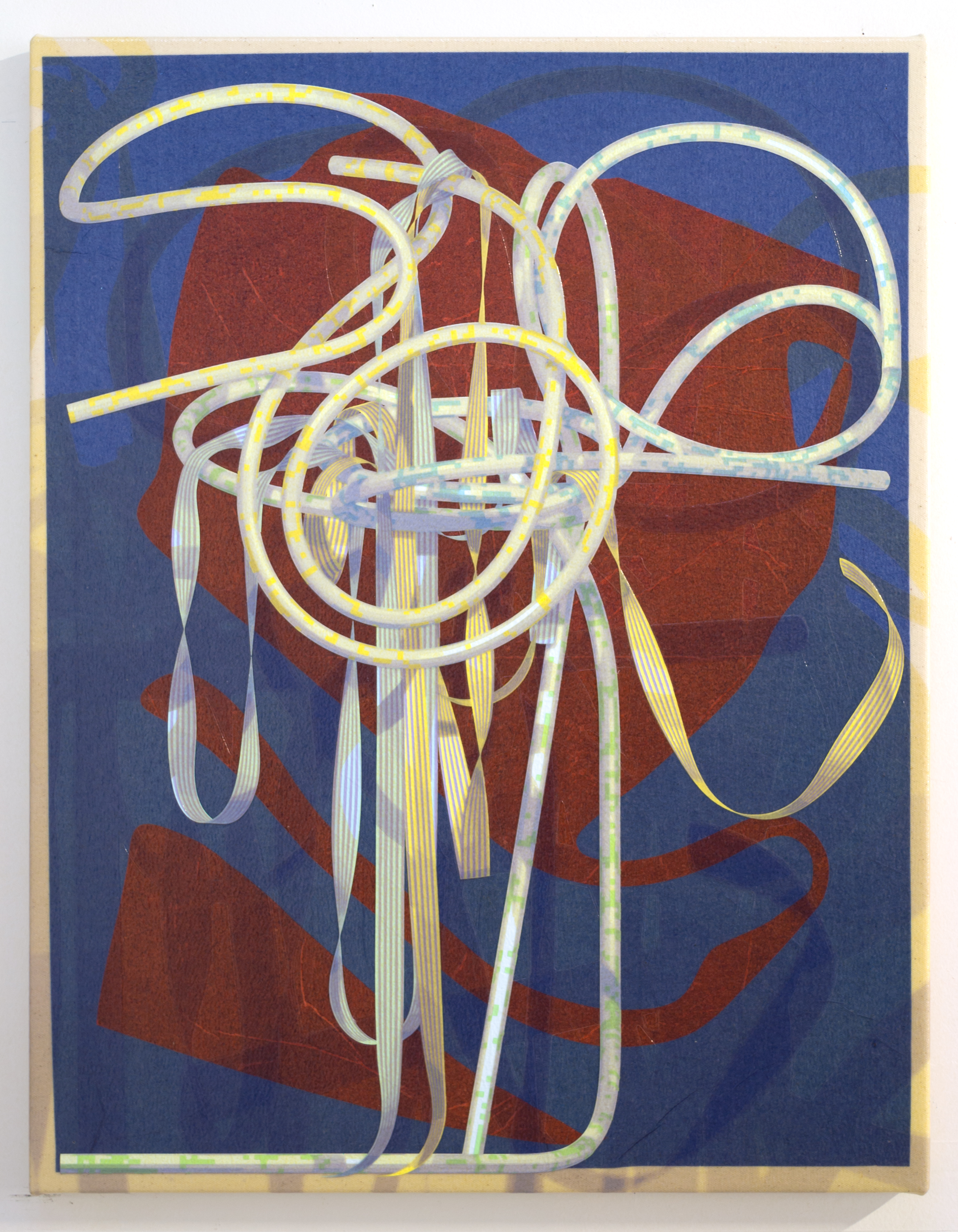 Stancehappen 6 (Shapermaker), acrylic and tissue paper on canvas, 27 x 21 inches
